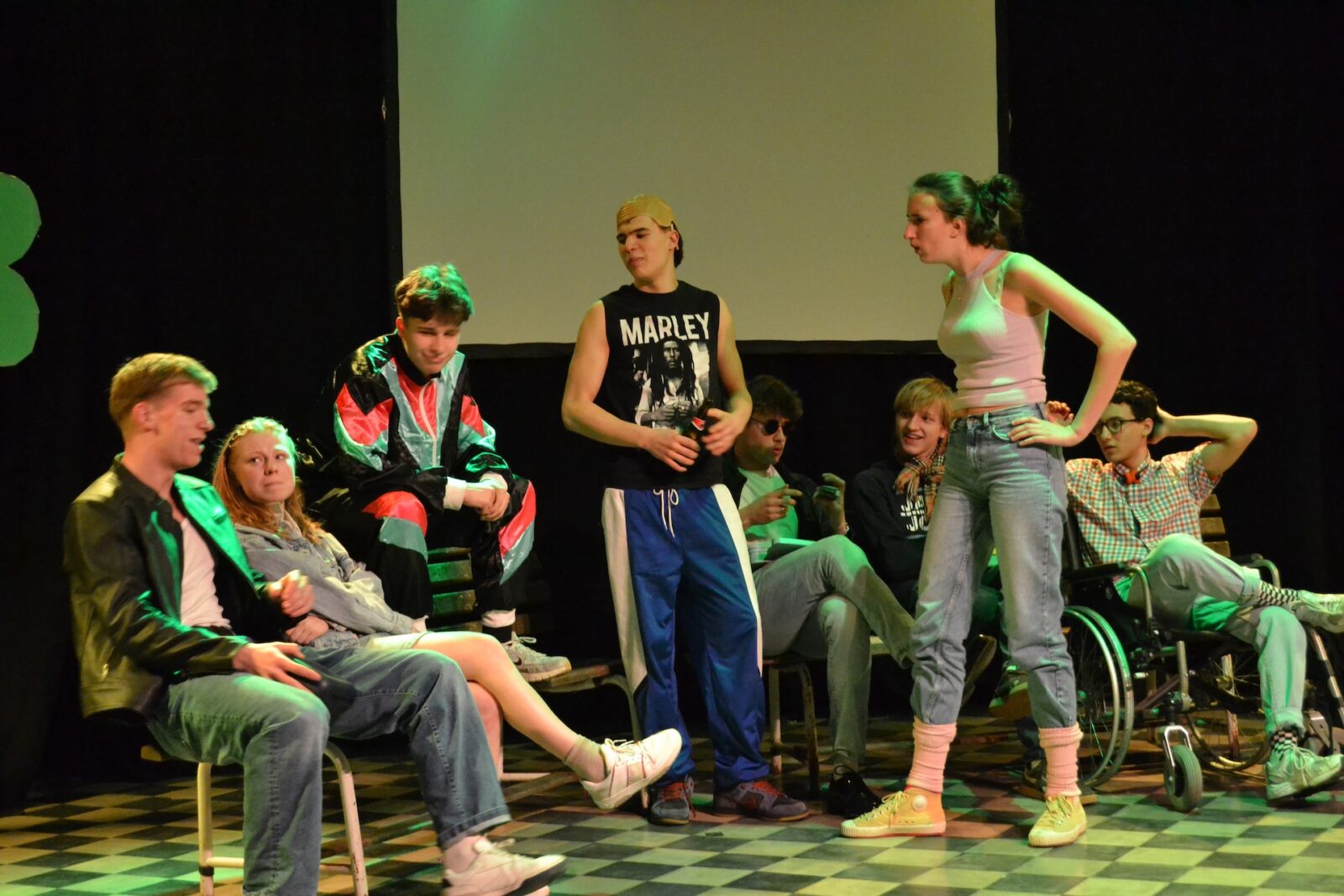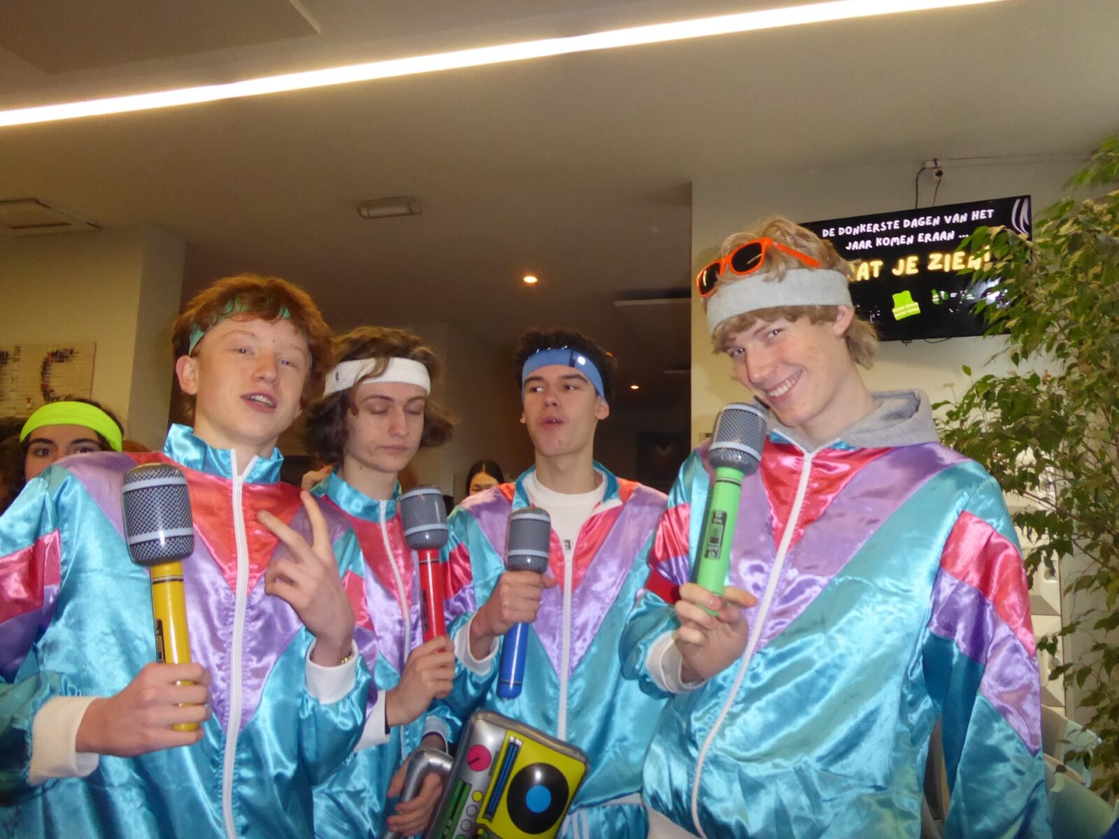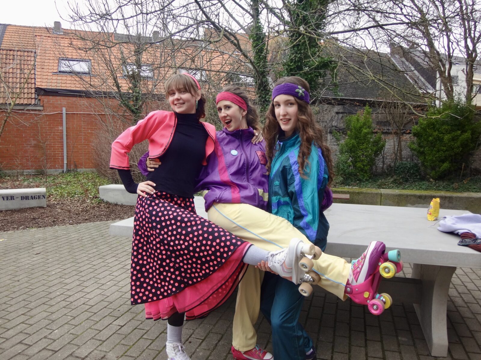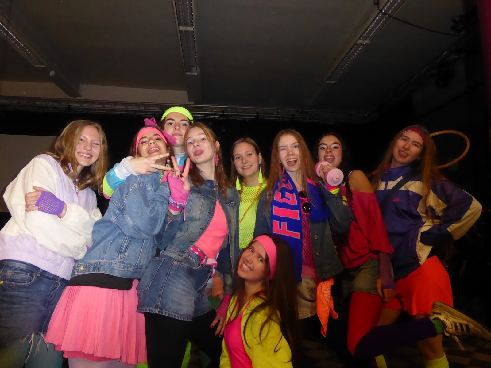 De 100-dagen zijn een rijke traditie op onze school: zowat halverwege het jaar vieren de zesdes alvast hun nakende afscheid van Sint-Jans. Die stap naar volwassenheid gaat gepaard met nog heel wat halfwassen ongein: een hele week bevolken kleurrijke, soms knotsgek verklede figuren de school, verschijnen verdachte posters in de gangen, en valt er met de zesdes dag na dag minder aan te vangen. Het thema van dit jaar – de eighties – leent zich natuurlijk tot knallende kleuren en fluo-accessoires, en dat hebben we geweten!