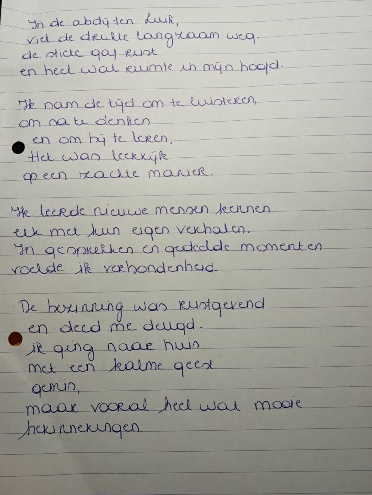 De eerste helft van de zesdejaars ging in het eerste semester al drie dagen op abdijbezinning. Verspreid over vijf verschillende abdijen in het hele land leefden ze mee op het monastieke ritme, voerden diepe gesprekken, en overstegen zichzelf.