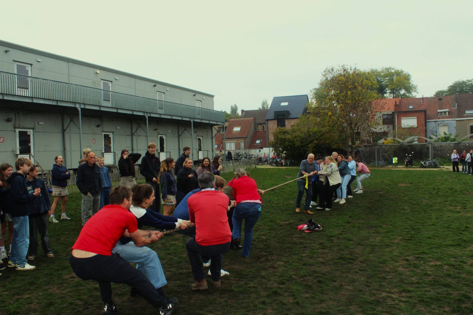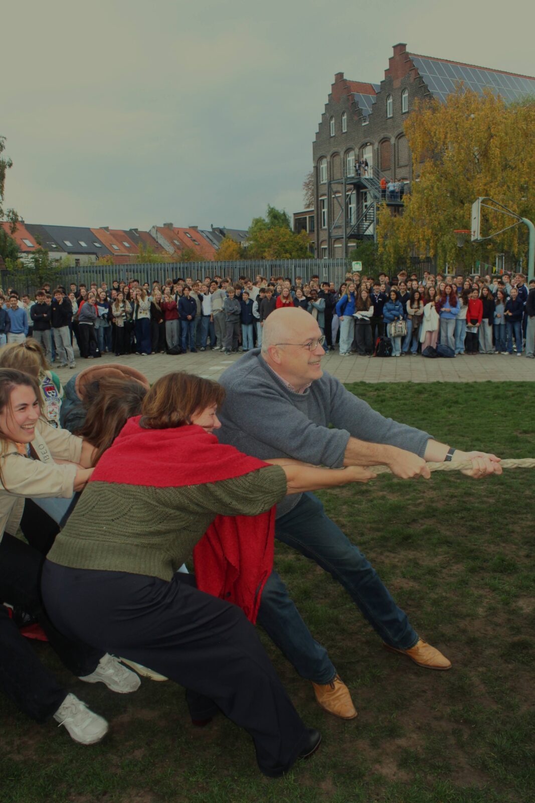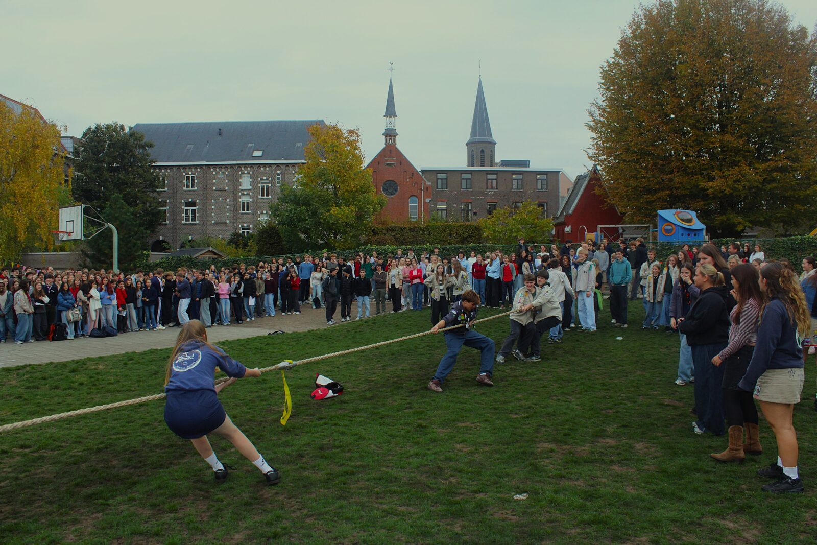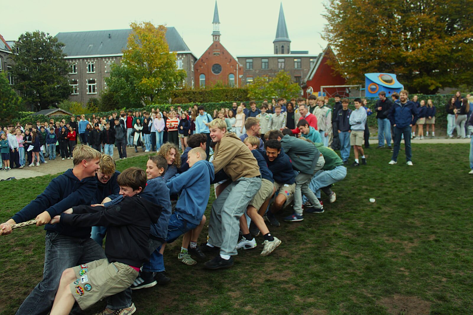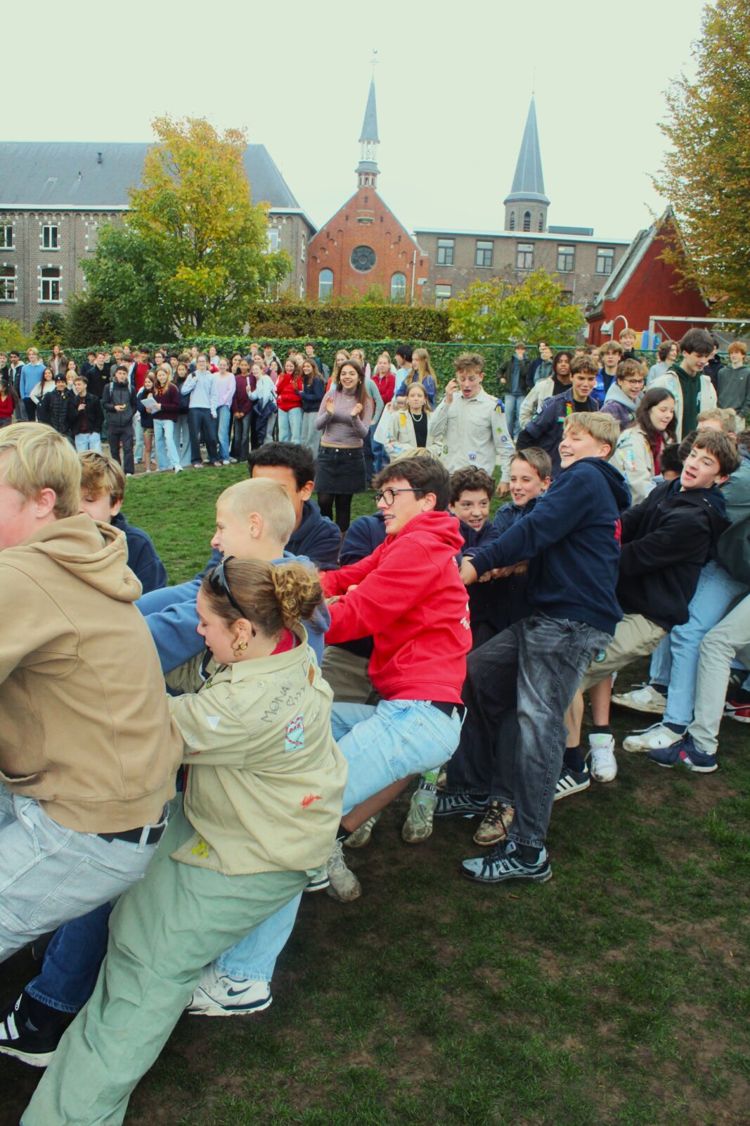 Om 10 uur was het tijd voor onze (ondertussen) legendarische touwtrekwedstrijd. De afgelopen edities wonnen we met het leerkrachtenteam maar dit jaar pakten onze leerlingen verdiend de zege. Ook onze directeur, mevrouw Boonen, zette haar beste beentje voor en genoot duidelijk mee.