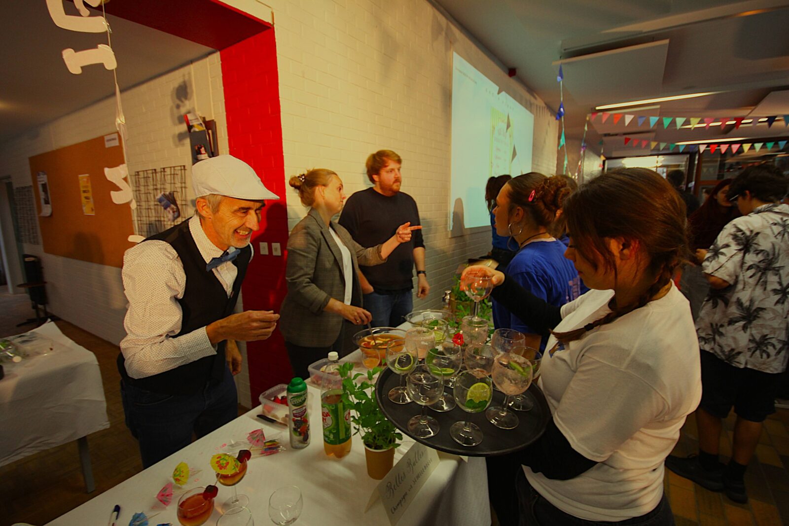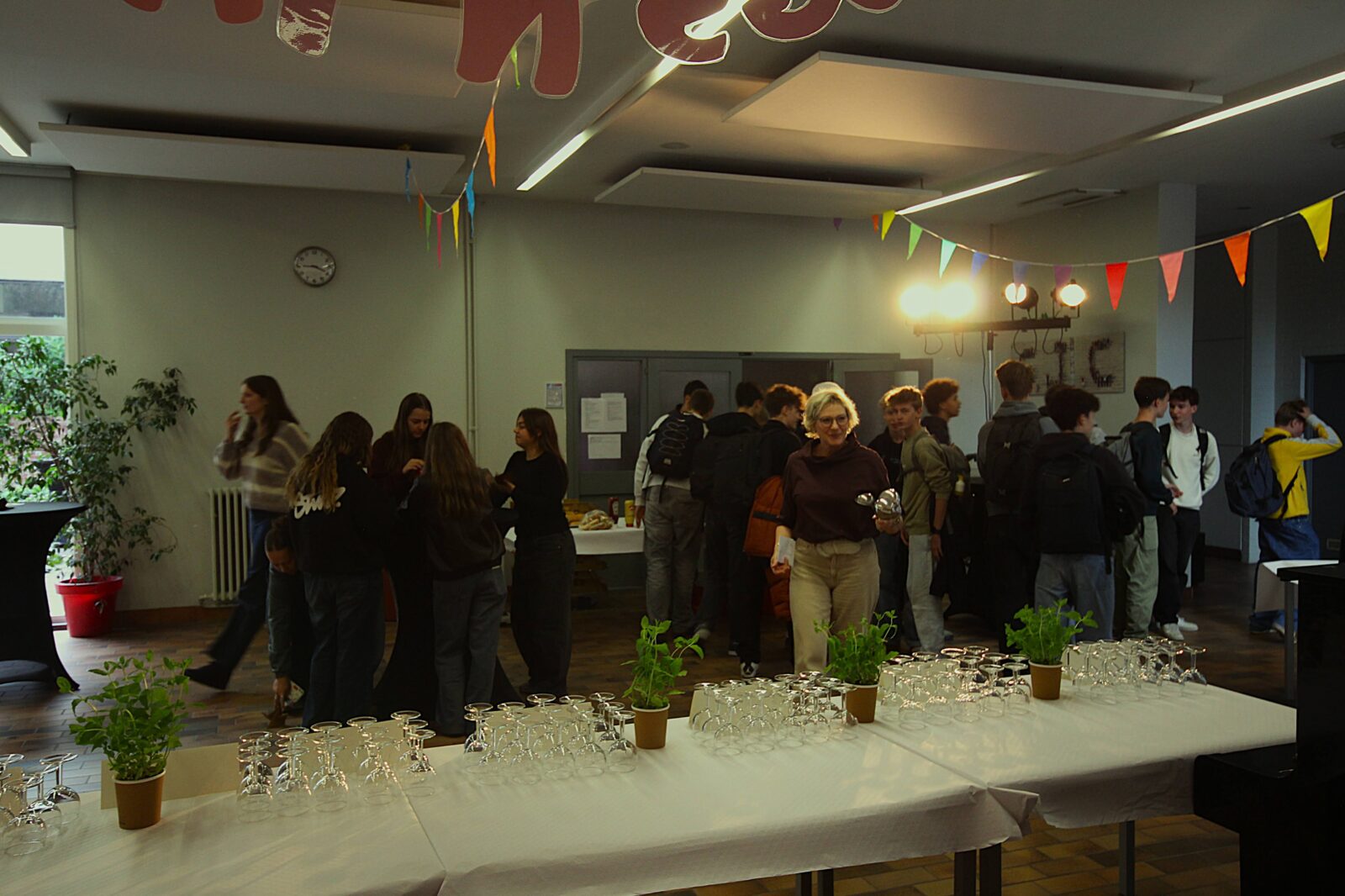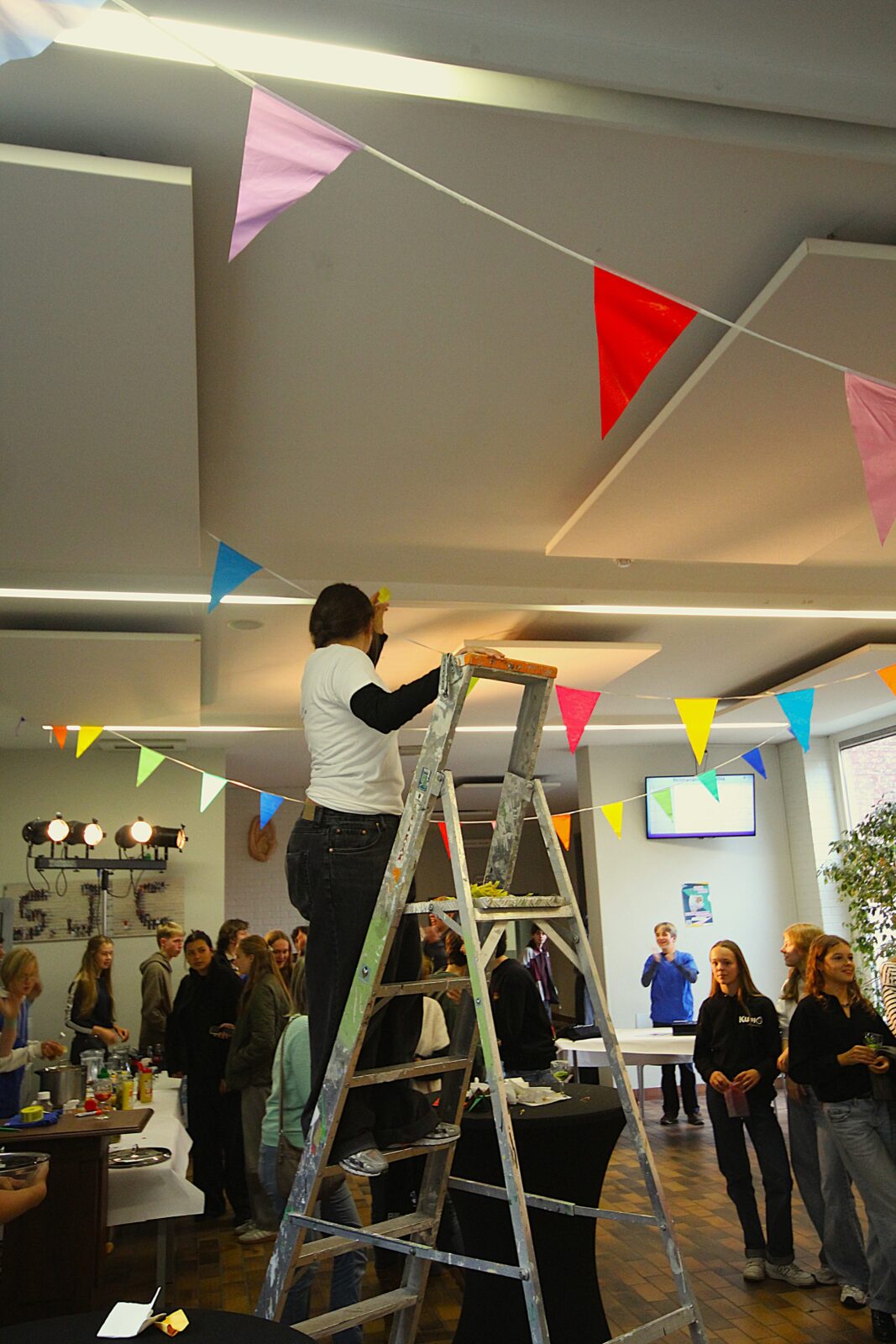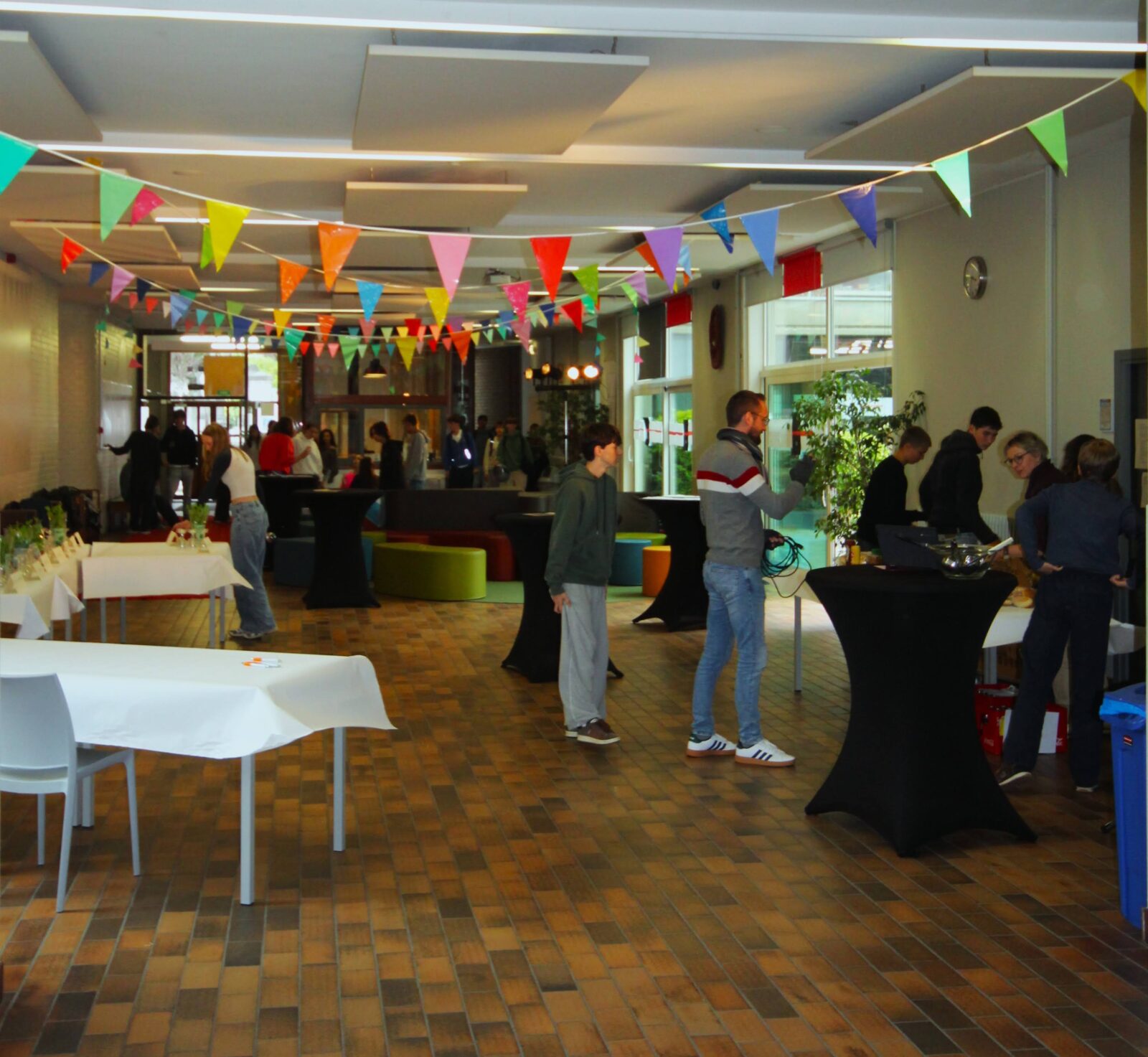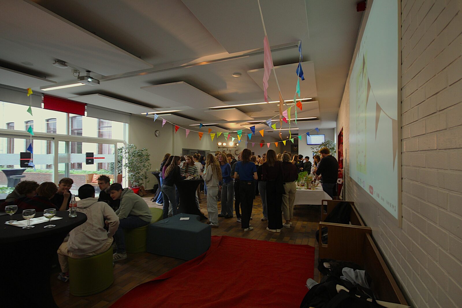 Leerlingen die in juni afstudeerden kwamen nog een keertje verbroederen met de huidige bevolkers van Campus Visitatie.