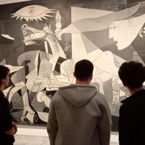 Op maandag vertrokken we naar Spaans Baskenland. We verbleven in de fijne stad Bilbao. De dag in Guernica zullen we niet vlug vergeten. Van scholieren uit twee verschillende scholen kregen we beklijvende familiegeschiedenissen te horen. Ongelofelijk hoe alle leerlingen zich direct thuis voelden bij elkaar. Het vredesmuseum dat uit de assen van de platgebombardeerde stad verrees zal ook lang blijven nazinderen.