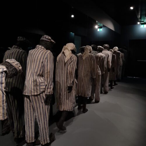 We volgden hun geschiedenis en leerden hoe het kamp was opgebouwd, en hoe het dagelijks leven er voor de gevangenen moet hebben uitgezien. Tussen de vitrines vol achtergelaten voorwerpen (brillen met gebogen pootjes, stapels kledingstukken en massa’s schoenen) kwam het verleden ineens huiveringwekkend dichtbij. Maar het waren vooral de kleine details die ons het diepst raakten: een kinderschoentje, een koffer met een zorgvuldig geschreven naam, een foto van een gezin dat nooit is teruggekeerd…