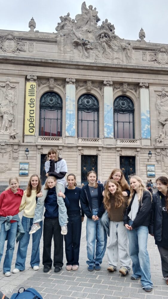 Enfin arrivés à Lille, on était rapidement répartis en groupes, chaque groupe accompagné d’un guide français. Nous sommes entrés dans un café, là on a parcouru la journée. On a visité des monuments et l’accompagnatrice nous a appris des faits sur la ville. Après il y avait aussi un peu de temps libre donc on a eu l’opportunité de flâner dans les rues et de faire du shopping.