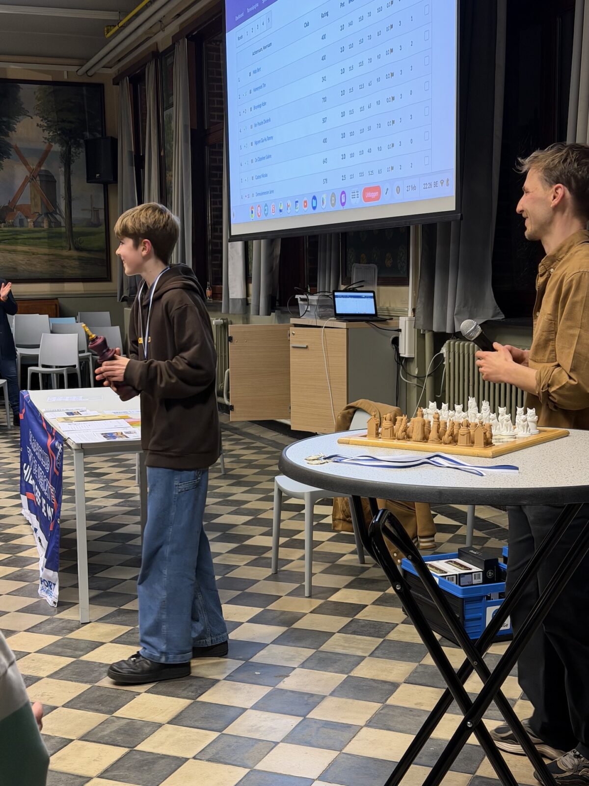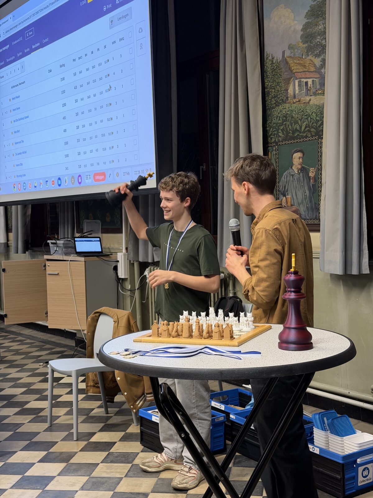 De originaliteit zat hem niet alleen in het spel, maar ook in de prijzen. Naast de felbegeerde hoofdprijs — een uniek 3D-geprint schaakbord — werden er ook prijzen uitgereikt op basis van loting. In bepaalde rondes streden willekeurige bordnummers om een extra prijs, een verrassingselement dat erg in de smaak viel bij de deelnemers.