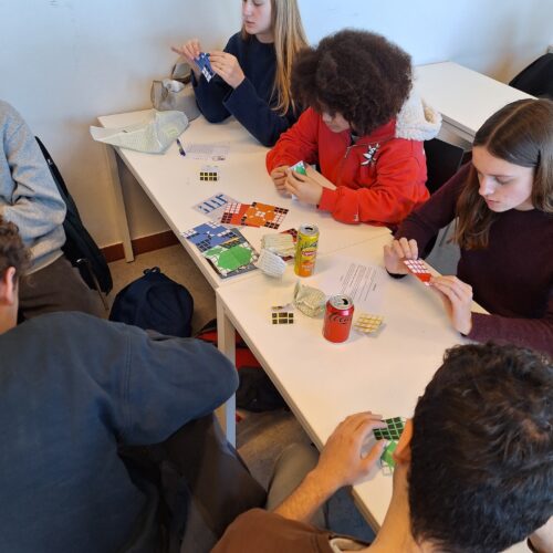 Alle leerlingen van de derde graad met 6 of 8 uur wiskunde namen deel aan Unimath, een wiskundedag georganiseerd door de UGent. In de voormiddag volgden we les over clusteren van data, AI-modellen of fourieranalyse. Nadien bleven de leerlingen van 5WWI8-GWI8 voor een namiddag gevuld met wiskundige spelletjes, raadsels en een quiz. Het leverde ons geen prijs op, maar wel veel plezier!