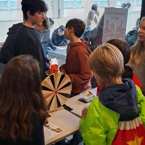 Dankzij het enthousiasme van vele leerlingen draaide het rad op volle toeren en vloog de stock met lekkers er al voor het belsignaal helemaal door.